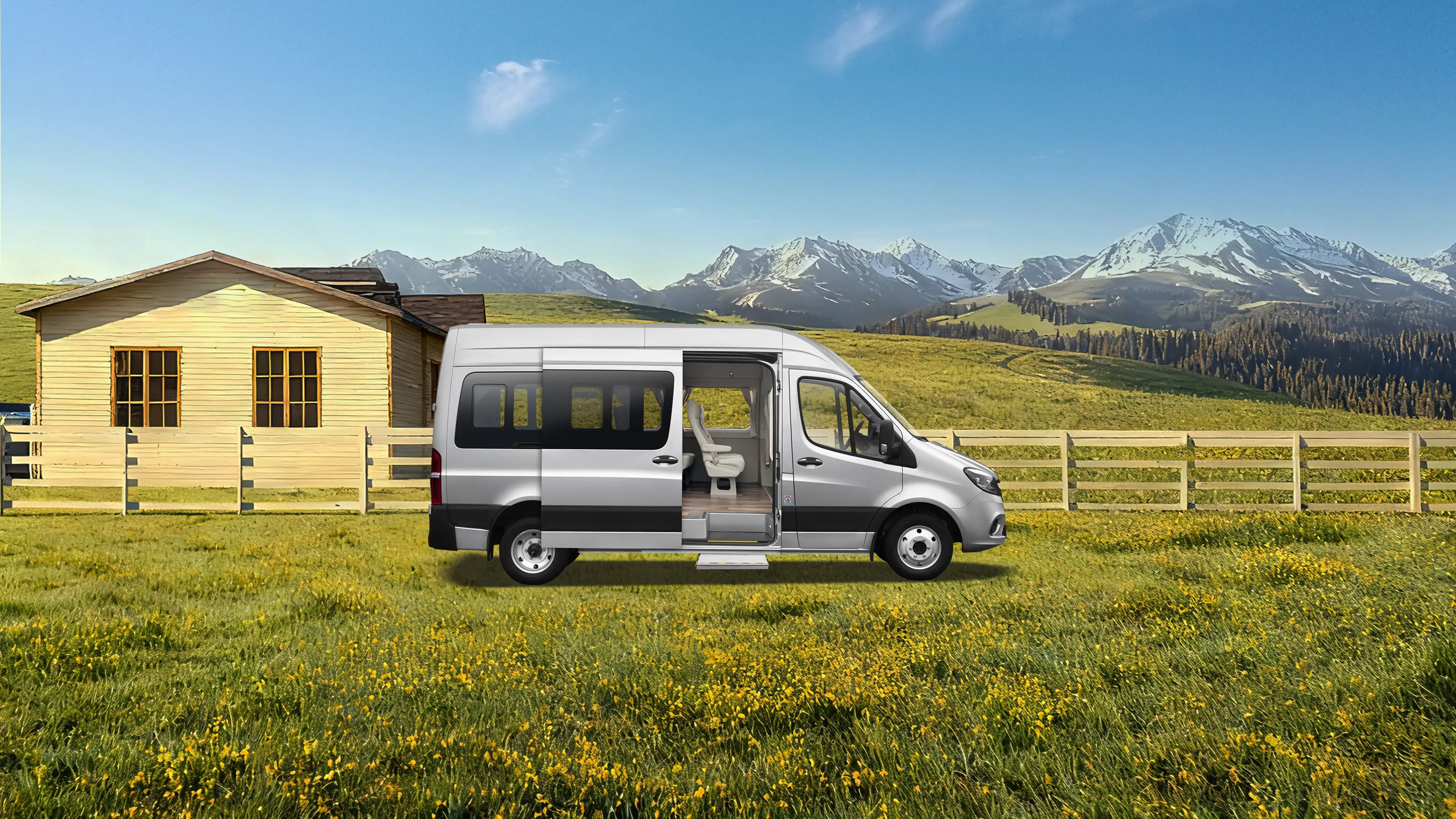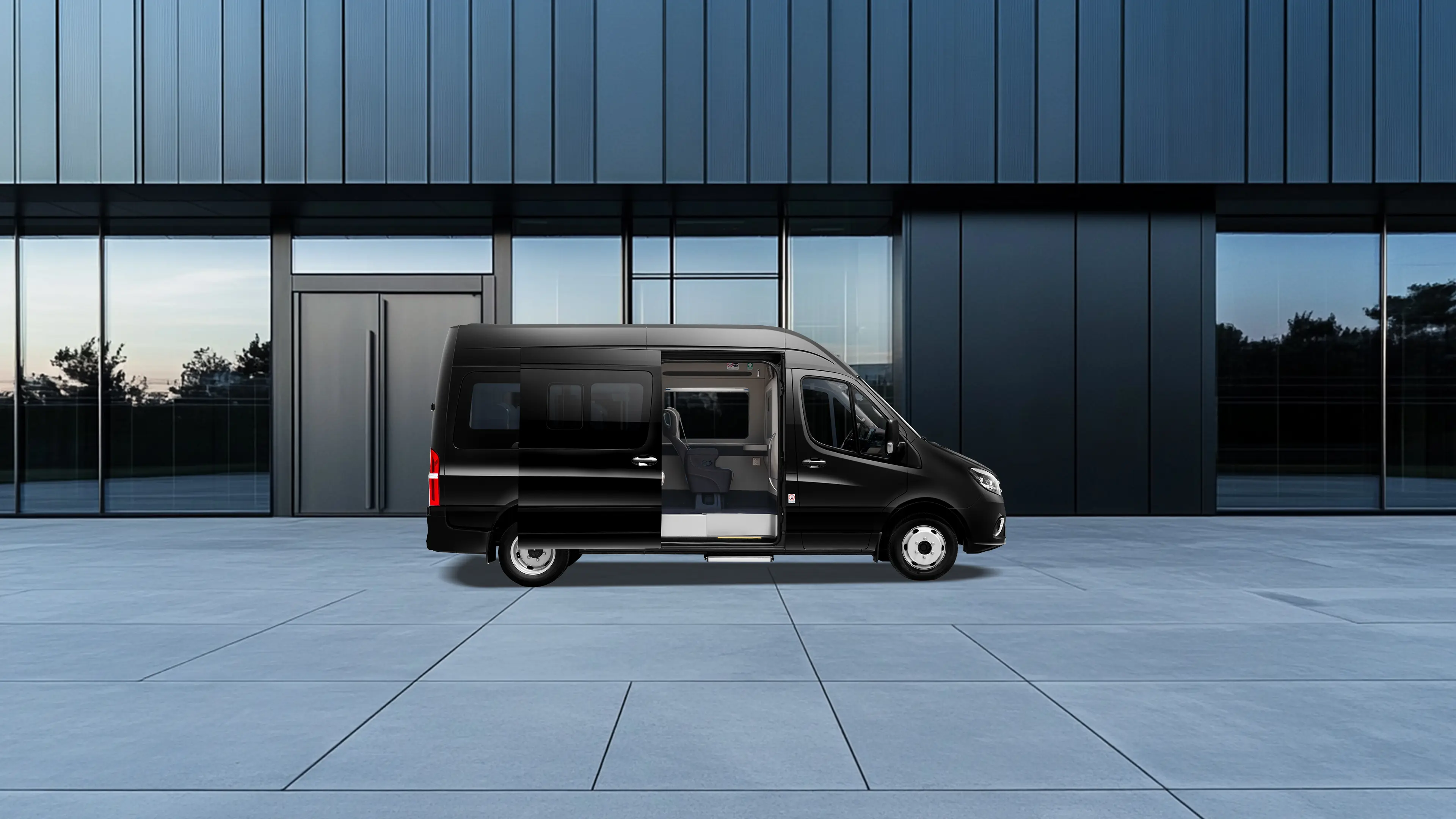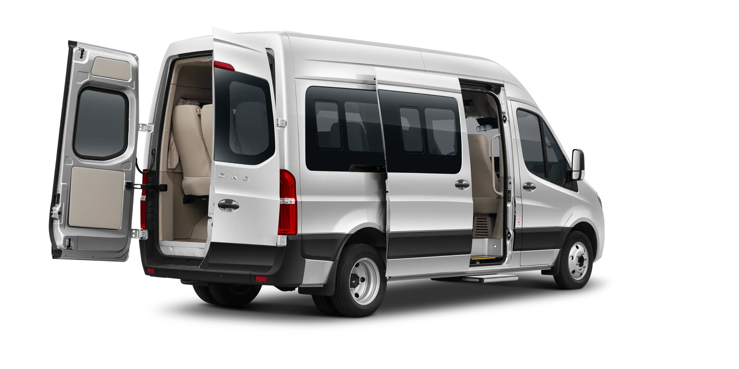 - أبواب خلفية متقابلة + باب منزلق للركاب
